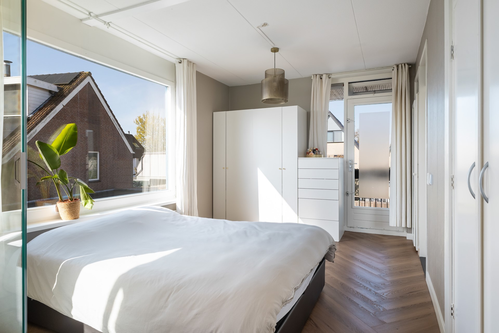 Houten kozijnen met dubbel glas (naar verwachting worden deze in 2026 vervangen door kunstof kozijnen met triple glas)